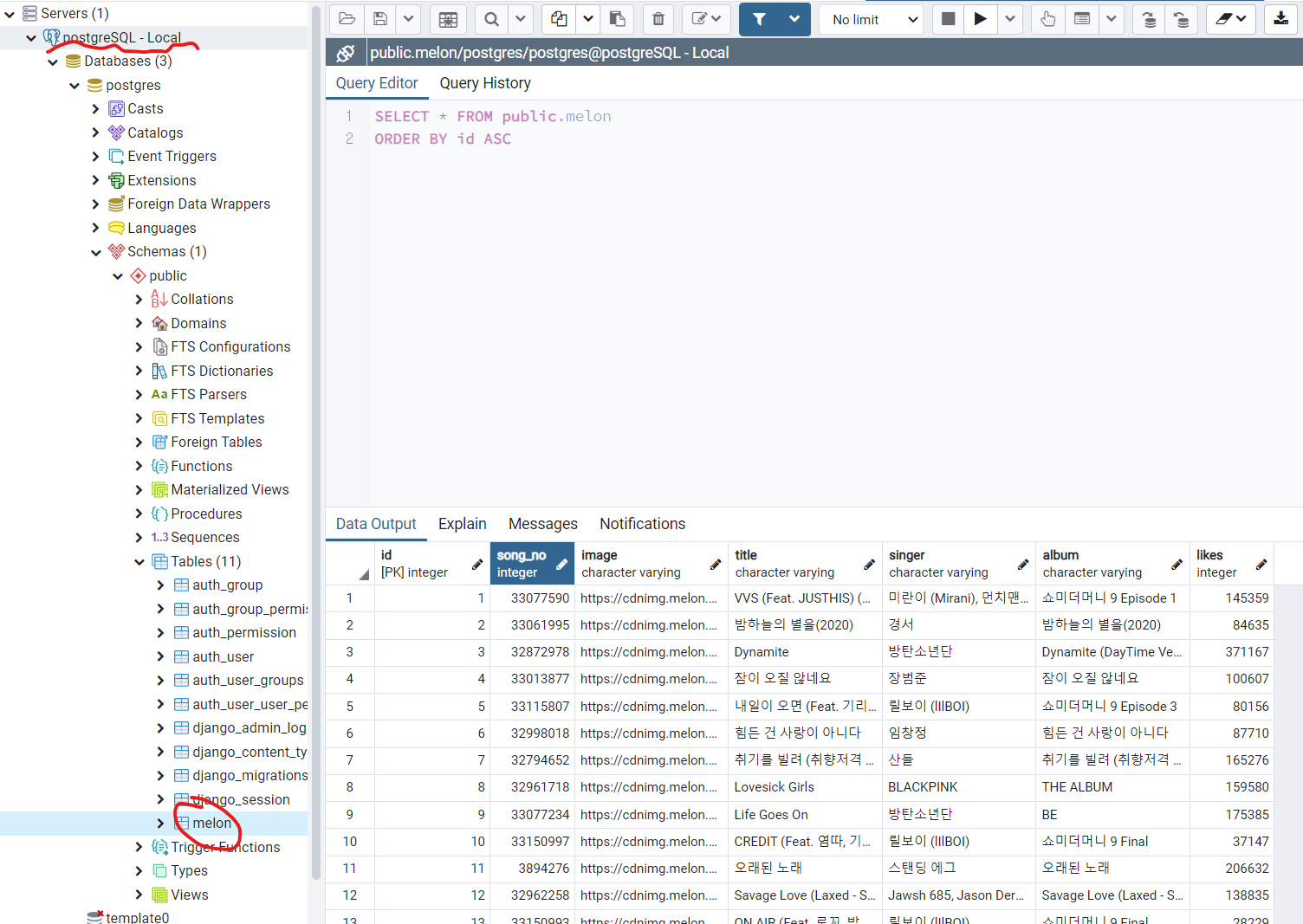 pgAdmin4 이용해서 DB를 확인해본 결과 데이터가 정상적으로 들어간것을 확인할 수 있다.